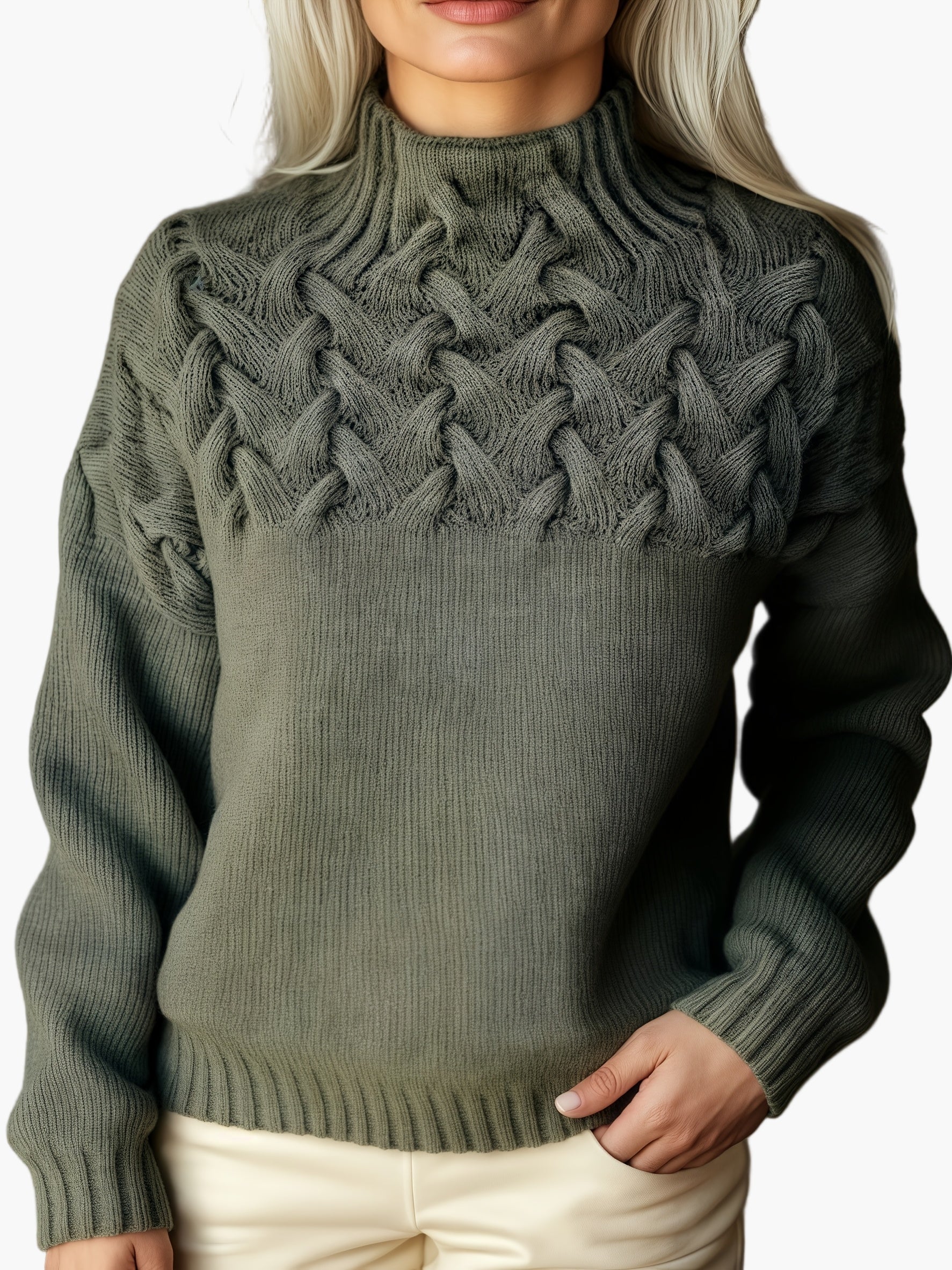 Damen Strickpullover mit Zopfmuster und Stehkragen – Stilvoller Winterpullover für Freizeit und Alltag