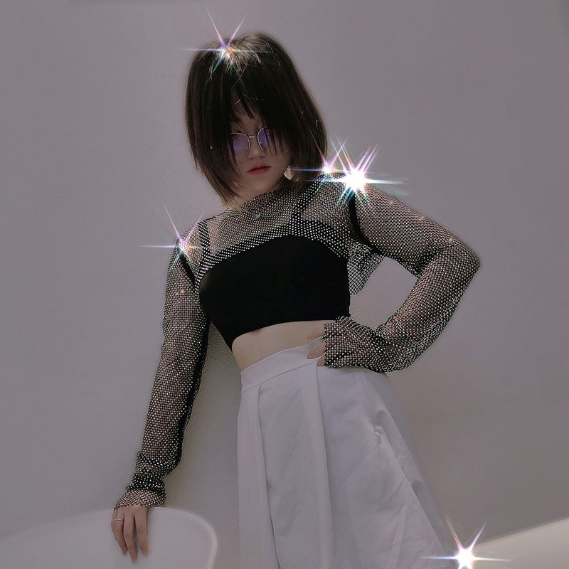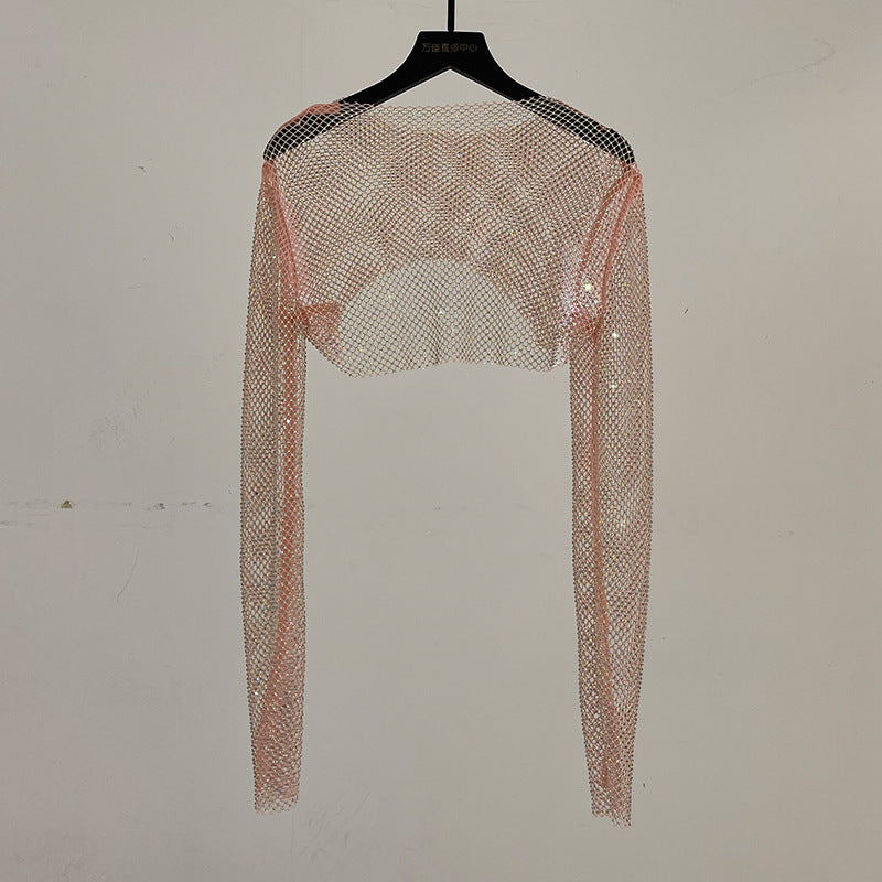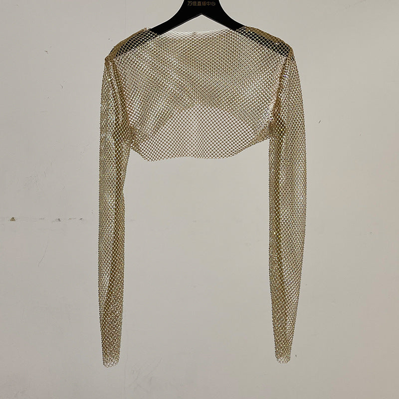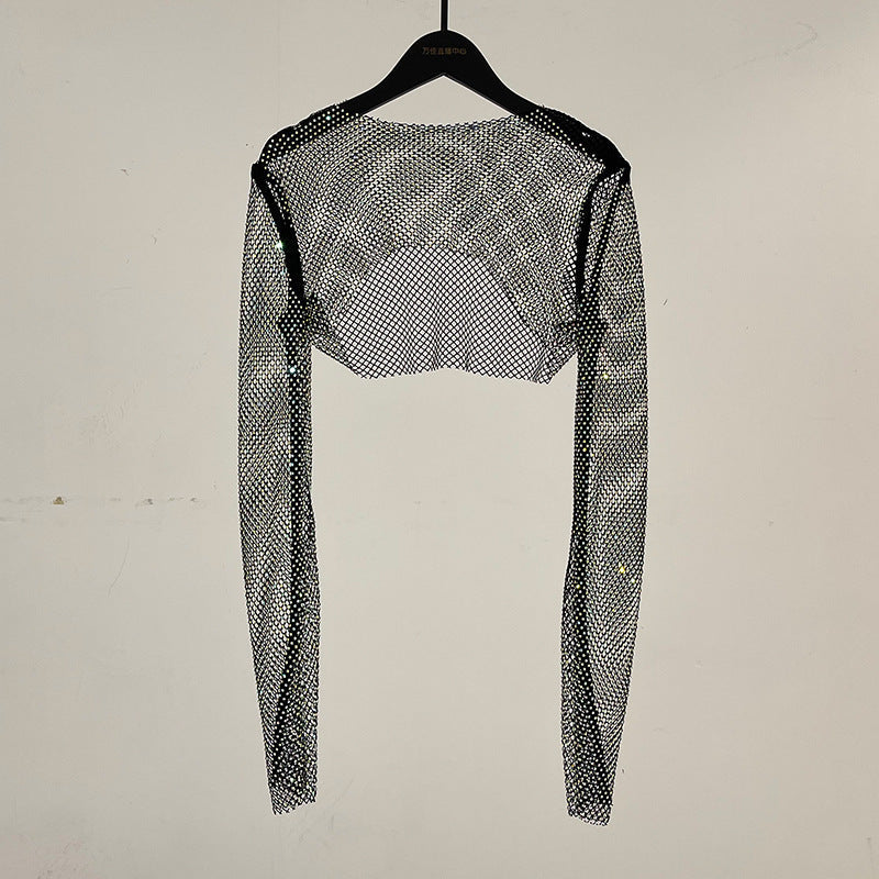 Melanie – Glänzendes Netzhemd mit Strasssteinen