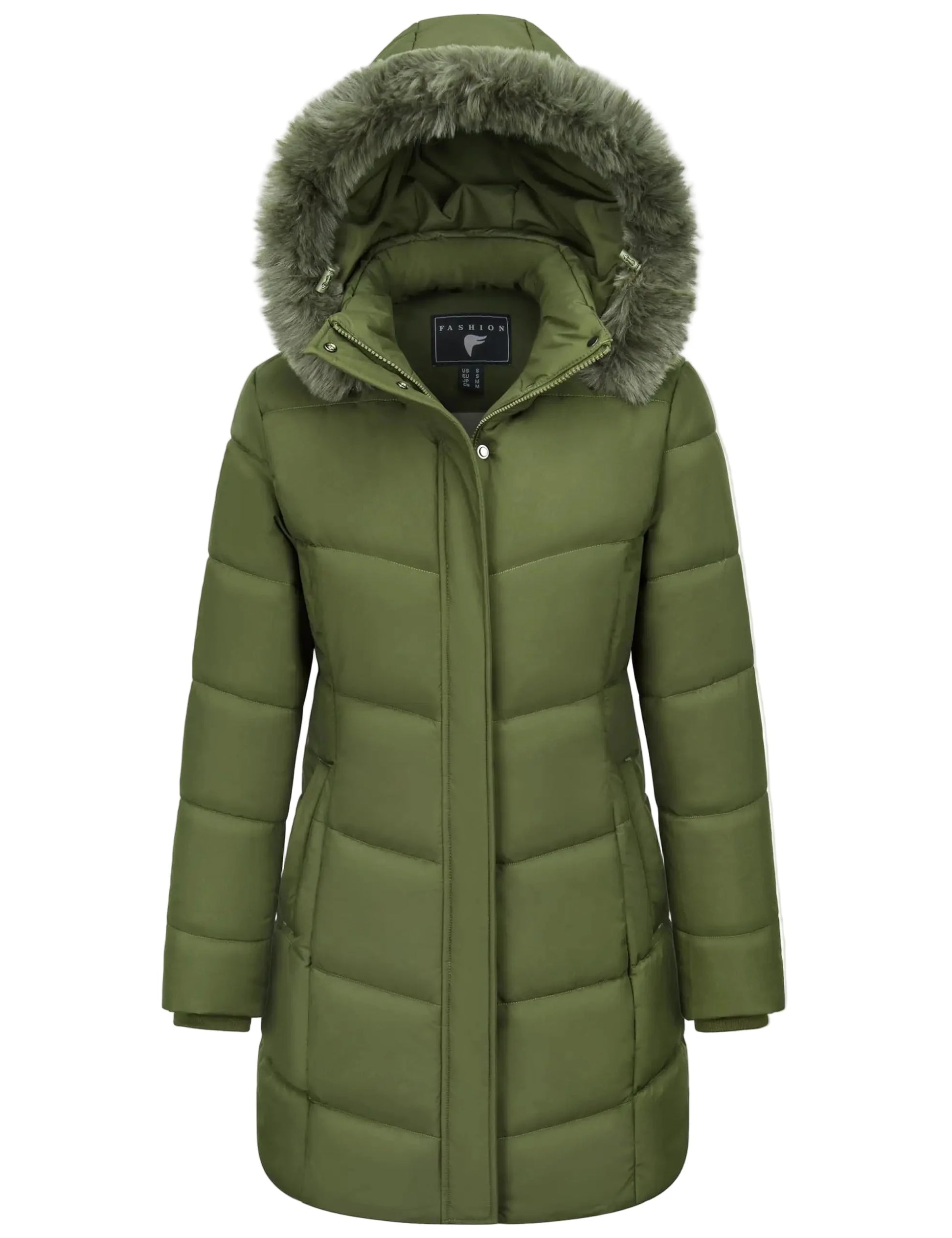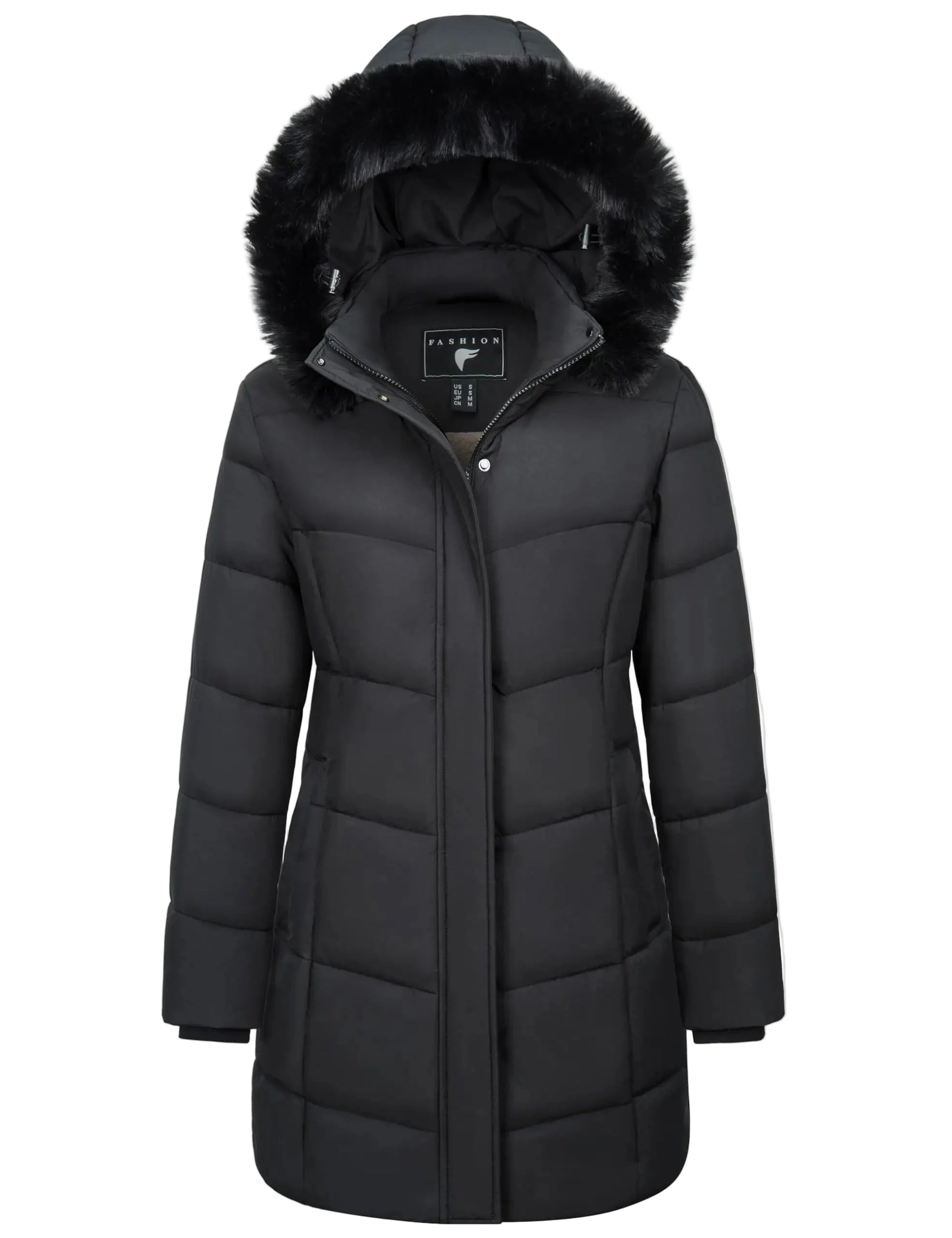 TACVASEN Womens Winter Thicken Parka Coat Warm Jacket Down Puffer Outwear with Faux Fur Removable Hood Waterproof Windproof Coat